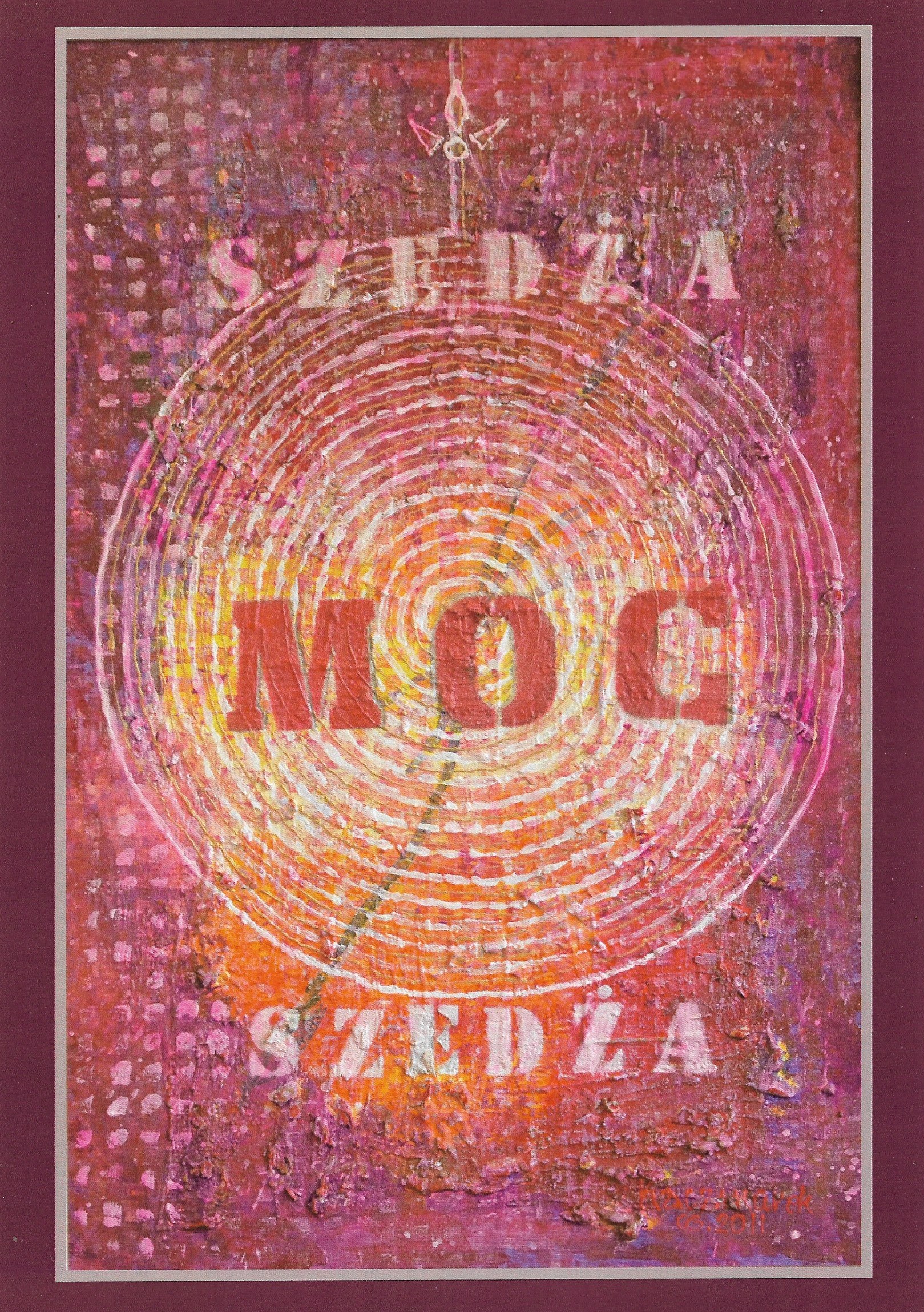 Obraz wykonany jest farbami akrylowymi. Jest mandalą. Znajdują się na nim dwa wyrazy: jeden z nich to „moc”, drugi – „szedża”. Szedża, to fonetycznie zapisane tłumaczenie z języka tybetańskiego słowa: „wiedza”.